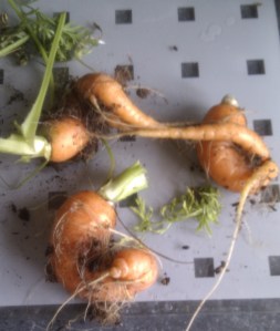 They wouldn’t be accepted by any supermarket, the wouldn’t meet any directives for straightness, they may not even be seen as appropriate to serve – but strange-looking or not – they tasted great. Their way of growth did not stop them being carrots all the same.